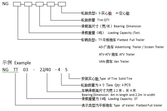 | 型号Model No. | 承重平台尺寸 Size [米/Meter] | 高 Height [米/Meter] | 承重重量 Payload Capacity [吨/Ton] | 轮胎类型 Type of Tire | 轮胎数量Tire QTY | 主架构钢结构Cross Member | 主梁钢结构 Main Beam | |